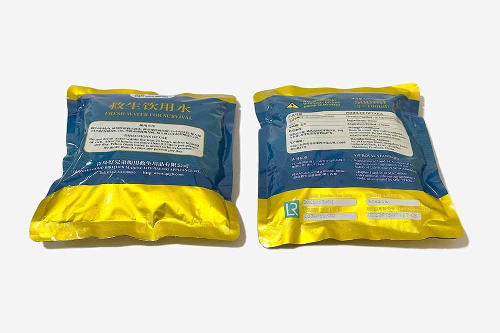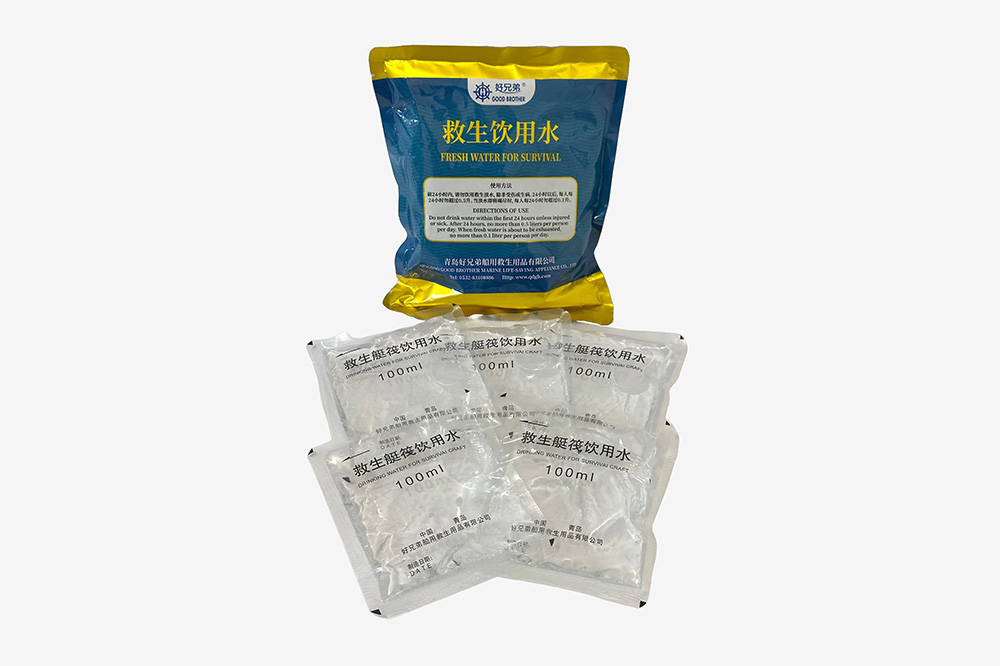救生饮用水是在海上遇难时的必需品,配备于救生筏、救生艇和(半)充气救援艇。