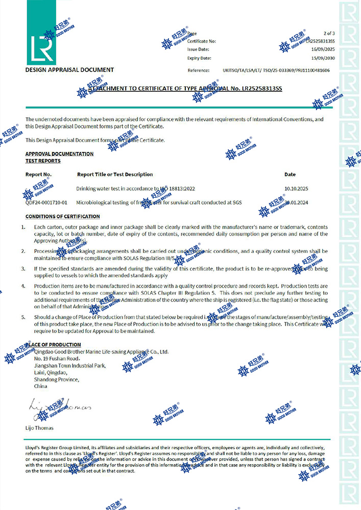 救生饮用水LR证书